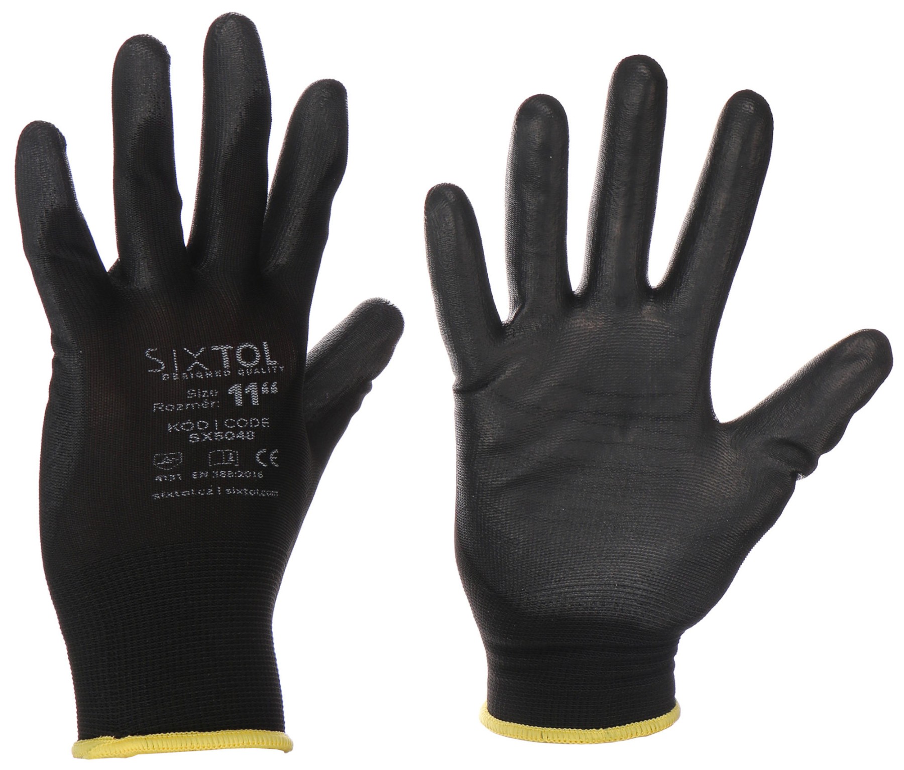 Arbeitshandschuhe aus Polyester, teilbeschichtet mit Polyurethan SIXTOL GLOVE PE-PU 11, schwarz, Größe 11 SIXTOL