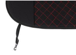 Der Autositzbezug SIXTOL CAR SEAT COVER PAD 1 ist ein stilvolles und praktisches Zubehör für Ihr Fahrzeug, das die Originalpolsterung vor Abnutzung schützt und gleichzeitig den Sitzkomfort erhöht. Die Kombination aus schwarzer Farbe und roter Naht verleiht dem Innenraum ein modernes und elegantes Erscheinungsbild. Der Bezug besteht aus schwarzem Sandwich-Textil mit atmungsaktiven Einsätzen, im Inneren befindet sich 1 cm starker Schaumstoff mit einer Dichte von 20D, der ein weiches Sitzgefühl bietet. Die Unterseite ist mit einer rutschfesten Gummiauflage und schwarzem Vliesstoff für bessere Stabilität versehen. Die Befestigung erfolgt mittels elastischer Bänder und Haken, was eine schnelle Montage und Demontage ermöglicht. Der Bezug ist für die meisten gängigen Typen von Vordersitzen geeignet.