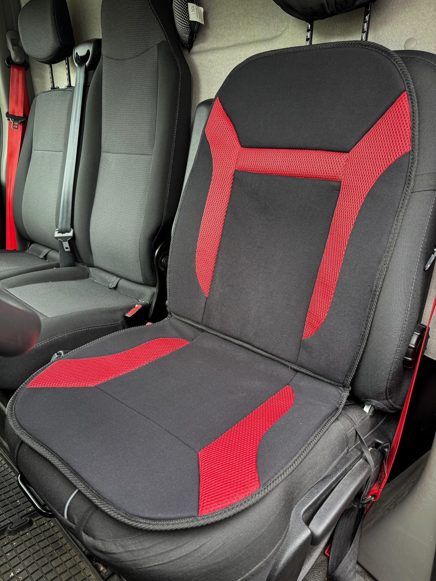 Der SIXTOL AUTOSITZBEZUG PAD 3 ist ein stilvolles und praktisches Accessoire für Ihr Fahrzeug, das die Originalpolsterung vor Abnutzung schützt und den Fahrkomfort erhöht. Die Kombination aus Schwarz und Rot mit markantem, sportlichem Design verleiht dem Innenraum einen modernen Look. Die Oberfläche besteht aus einem angenehmen und atmungsaktiven Mesh in Kombination mit einem farbenfrohen „Sandwich“-Textilpaneel. Im Inneren befindet sich 1 cm dicker Schaumstoff mit einer Dichte von 20D für ein weiches Sitzgefühl. Die Unterseite ist mit einer rutschfesten Gummiauflage und schwarzem Vliesstoff für mehr Stabilität ausgestattet. Die Befestigung erfolgt über elastische Bänder und Haken, was ein schnelles Anbringen und Abnehmen ermöglicht. Der Bezug ist für die meisten gängigen Vordersitze geeignet.