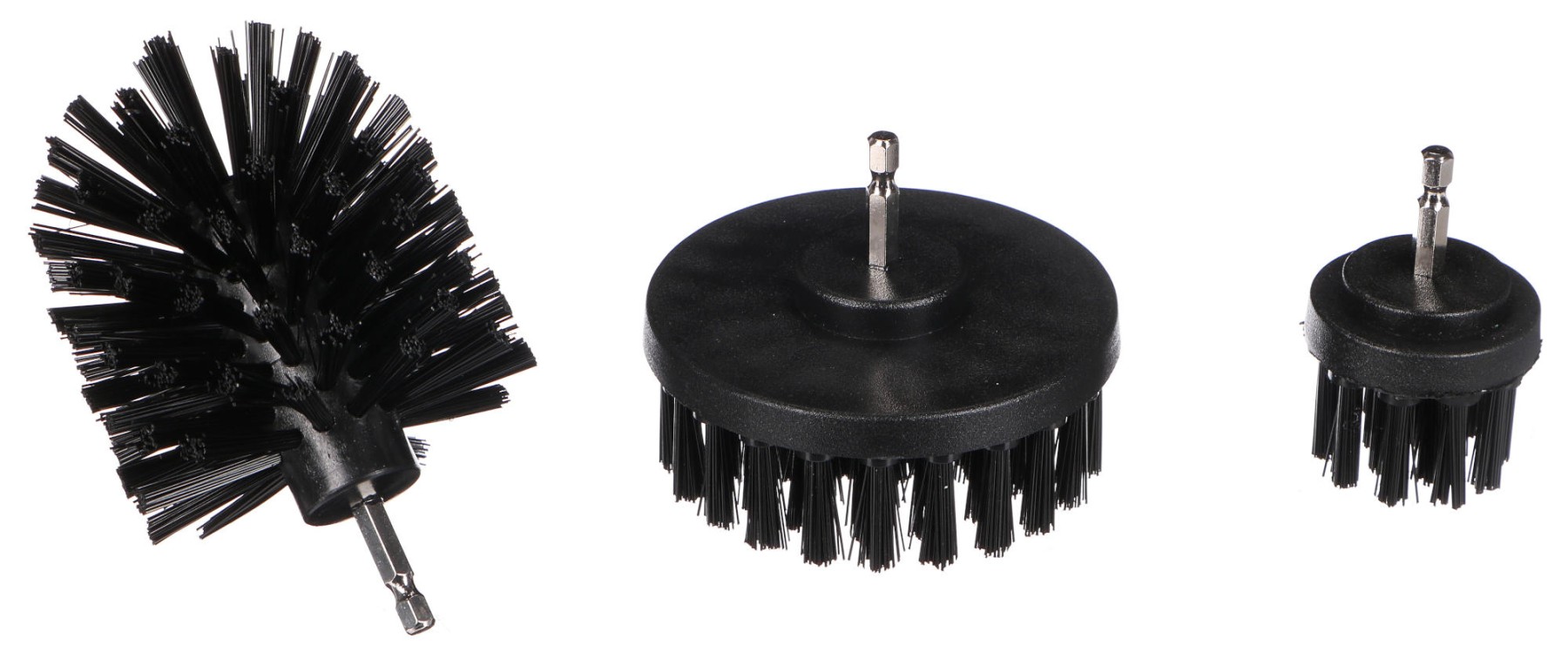Hochwertiges 3‑teiliges Set harter rotierender Reinigungsbürsten für die Bohrmaschine DRILL BRUSH 3 HARD, geeignet zum Reinigen von Felgen, Fahrwerk, Motorenteilen und weiteren harten Oberflächen. Das Set enthält 3 harte (schwarze) Bürsten, die nicht nur zur Autoreinigung, sondern auch zur Reinigung harter Oberflächen im Haushalt wie Fliesen in Küche und Bad, Toilette, Badewanne, Werkstatt oder zur Reinigung von Gartengeräten geeignet sind.