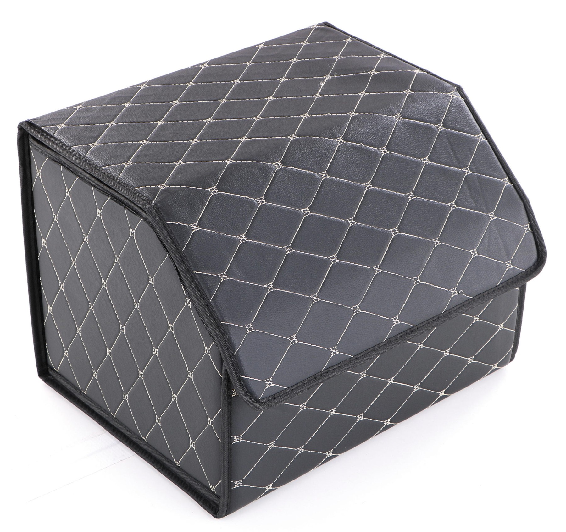 Der mittelgroße CAR COMPACT ELEGANT Organizer in der Größe M bietet die gleiche Praktikabilität und Eleganz wie seine kleinere Variante. Mit einem großen Fach und einer stilvollen Lederoptik mit luxuriösen Nahtmustern ist er Ihr zuverlässiger Begleiter auf Reisen. Der Klettverschluss an der Unterseite verhindert das Verrutschen im Kofferraum, und der Deckel mit Klettverschluss hält den Inhalt sicher an seinem Platz. Dieser Organizer ist ideal zur Aufbewahrung von Einkäufen, Sportausrüstung oder anderen Dingen im Auto. Wie alle anderen Modelle ist er faltbar und leicht zu reinigen, was eine lange Lebensdauer und einfache Wartung gewährleistet.