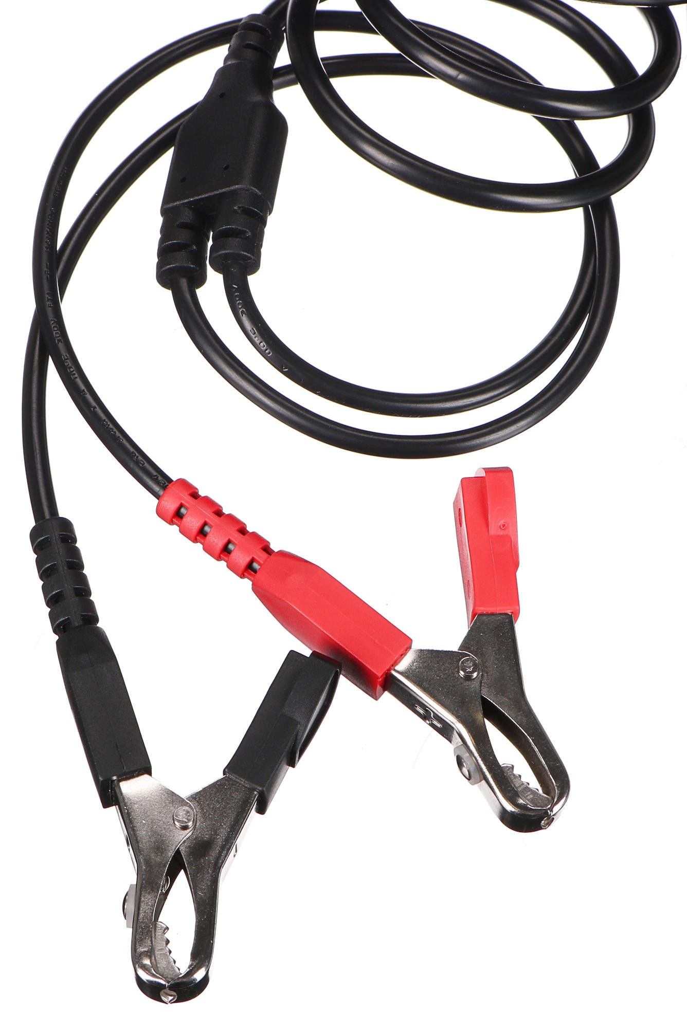 Lange Kabel mit Klemmen für bequemen Anschluss auch in beengten Bereichen.