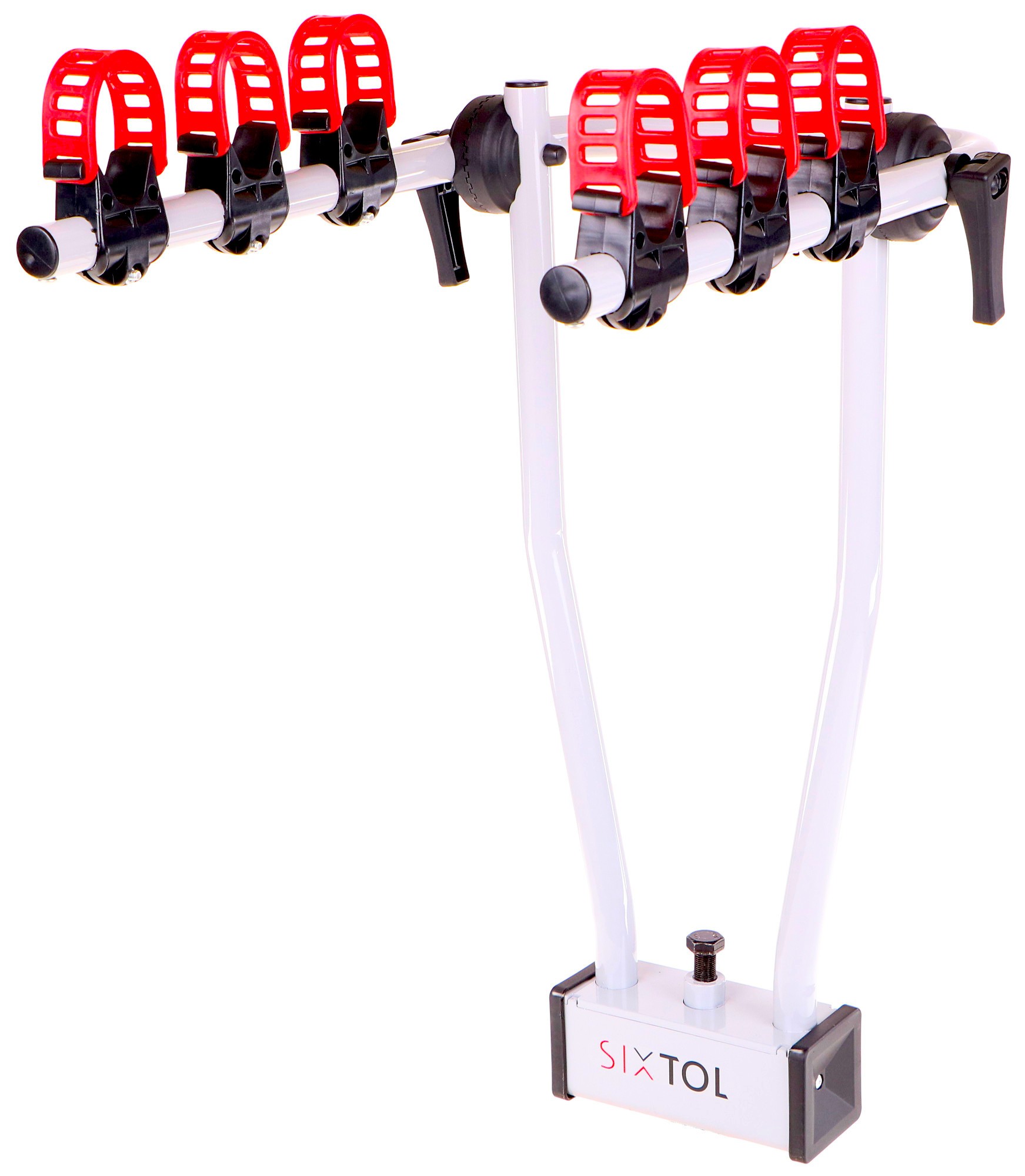 Gesamte BeschreibungKompakter Fahrradträger für die Anhängerkupplung, geeignet für drei Fahrräder, mit Werkzeugfreiem Befestigungssystem.