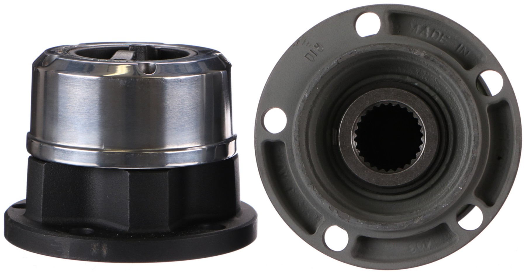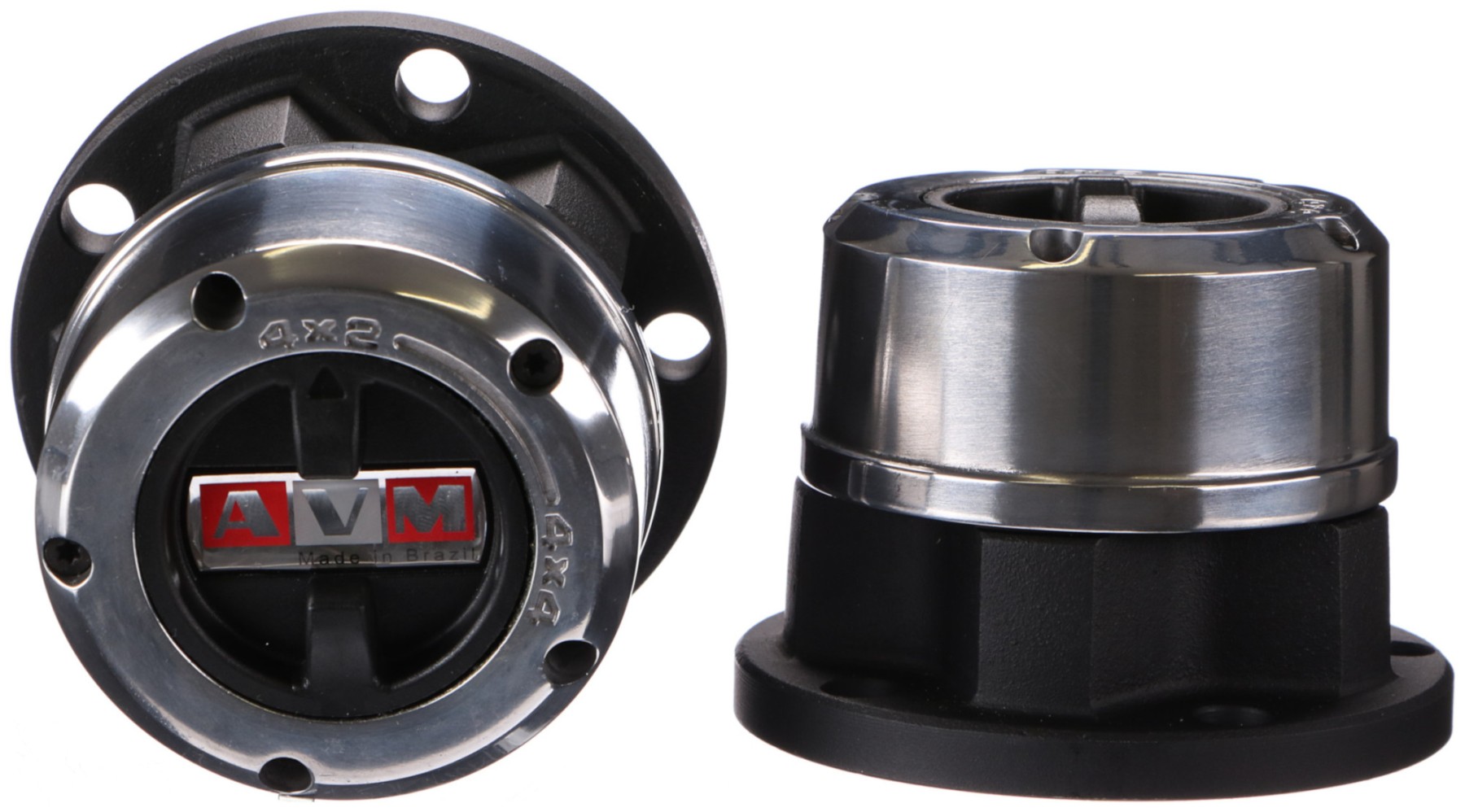 Satz von 2 manuellen Freiläufen höchster Qualität der Marke AVM, geeignet für normale und Offroad-Fahrzeuge. Durch die massive Stahlkonstruktion und die Epoxidlackierung sind sie widerstandsfähig gegen extreme Witterungsbedingungen im Außenbereich. Die inneren Komponenten sind präzise verarbeitet.