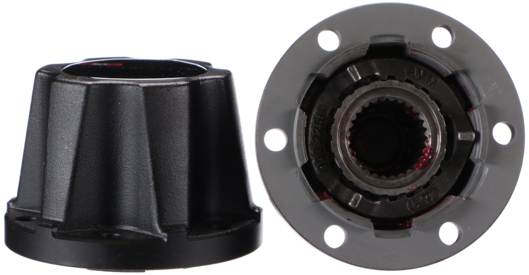 Satz von 2 automatischen Freiläufen höchster Qualität der Marke AVM, geeignet für normale und Offroad-Fahrzeuge. Durch die massive Stahlkonstruktion und die Epoxidlackierung sind sie widerstandsfähig gegen extreme Witterungsbedingungen im Außenbereich. Die inneren Komponenten sind präzise verarbeitet.