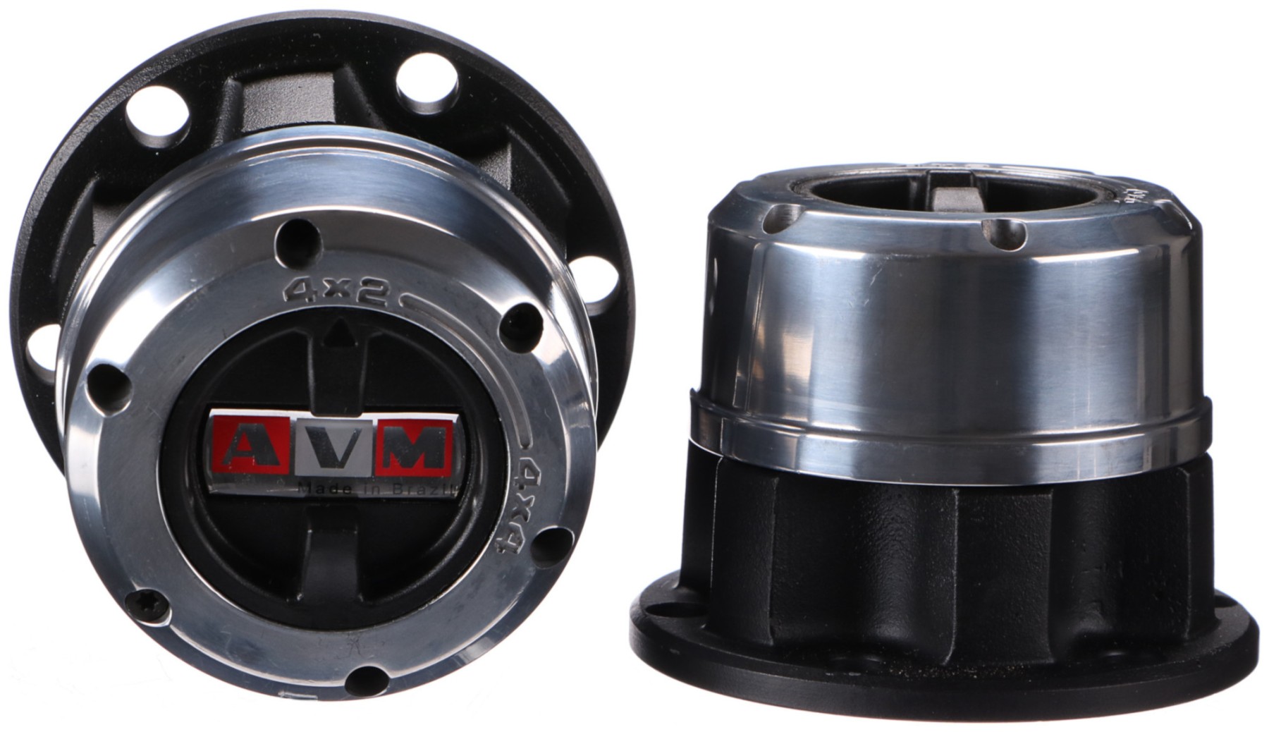 Satz aus 2 manuellen Freilaufnaben höchster Qualität der Marke AVM, geeignet für Straßen- und Offroad-Fahrzeuge. Dank massiver Stahlausführung und Epoxidbeschichtung sind sie beständig gegen extreme Witterungsbedingungen. Die inneren Komponenten sind präzise verarbeitet.