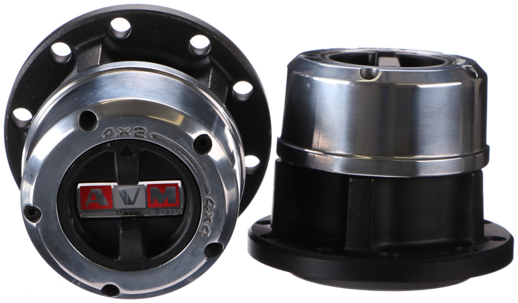 Satz aus 2 manuellen Freilaufnaben höchster Qualität der Marke AVM, geeignet für Straßen- und Offroad-Fahrzeuge. Dank massiver Stahlausführung und Epoxidbeschichtung sind sie beständig gegen extreme Witterungsbedingungen. Die inneren Komponenten sind präzise verarbeitet.