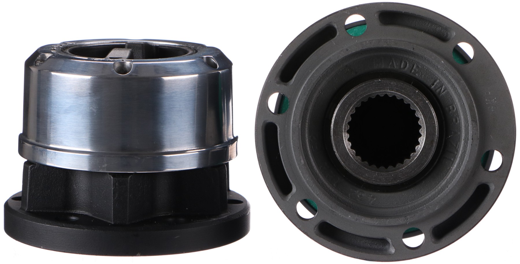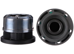Satz von 2 Stück manueller Freilaufnaben höchster Qualität der Marke AVM, geeignet für normale sowie Offroad-Fahrzeuge. Durch die massive Stahlkonstruktion und die Behandlung mit Epoxidlack sind sie beständig gegen extreme Witterungsbedingungen. Die inneren Komponenten sind präzise verarbeitet.