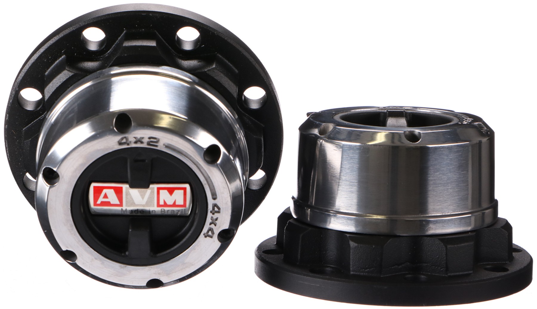 Satz von 2 manuellen Freilaufnaben höchster Qualität der Marke AVM, geeignet für normale und Offroad-Fahrzeuge. Durch die massive Stahlkonstruktion und die Epoxidbeschichtung sind sie widerstandsfähig gegen extreme Witterungsbedingungen. Die inneren Komponenten sind präzise verarbeitet.