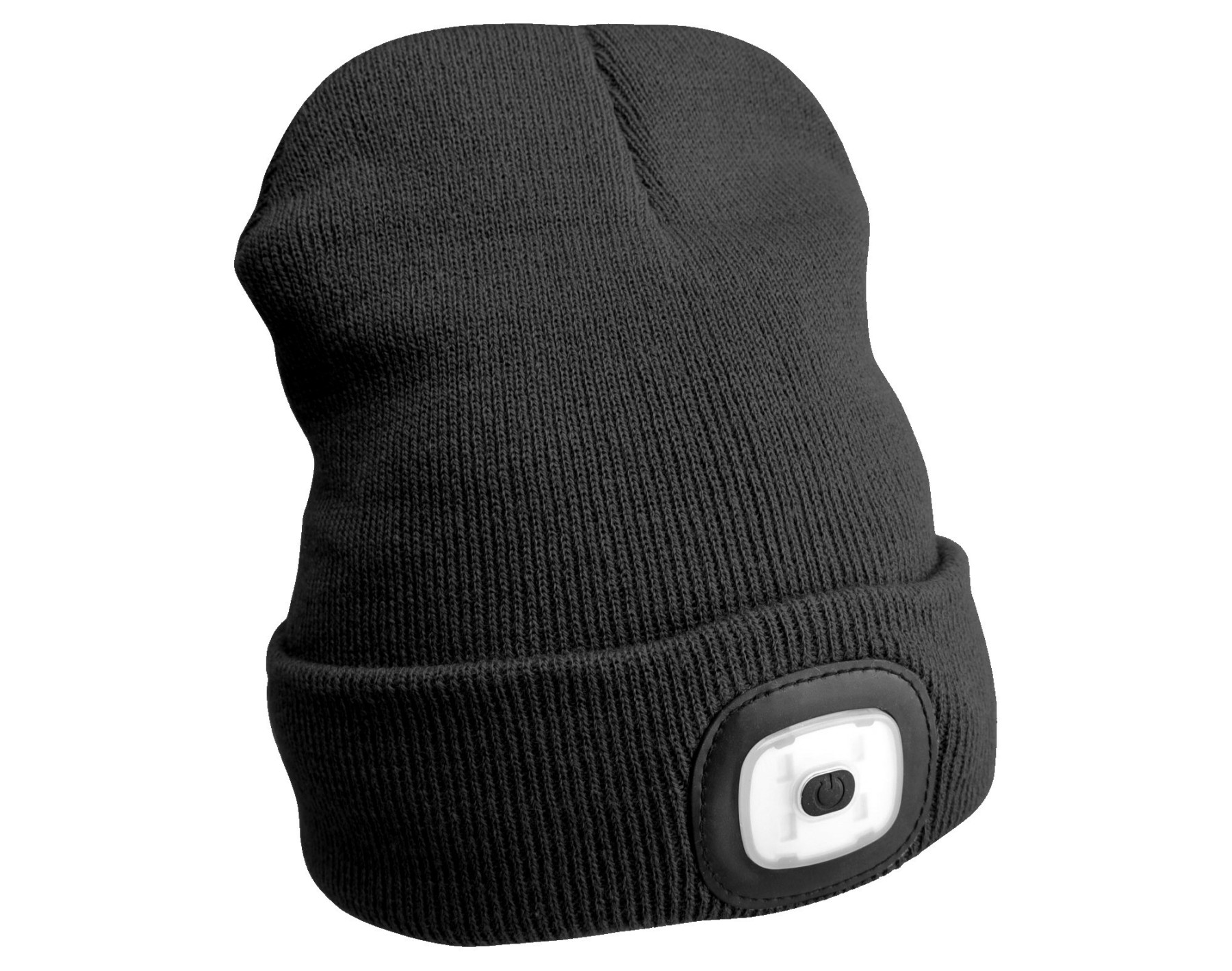 Mütze mit Stirnlampe 180 lm, wiederaufladbar, USB, Einheitsgröße, Baumwolle/PE, schwarz