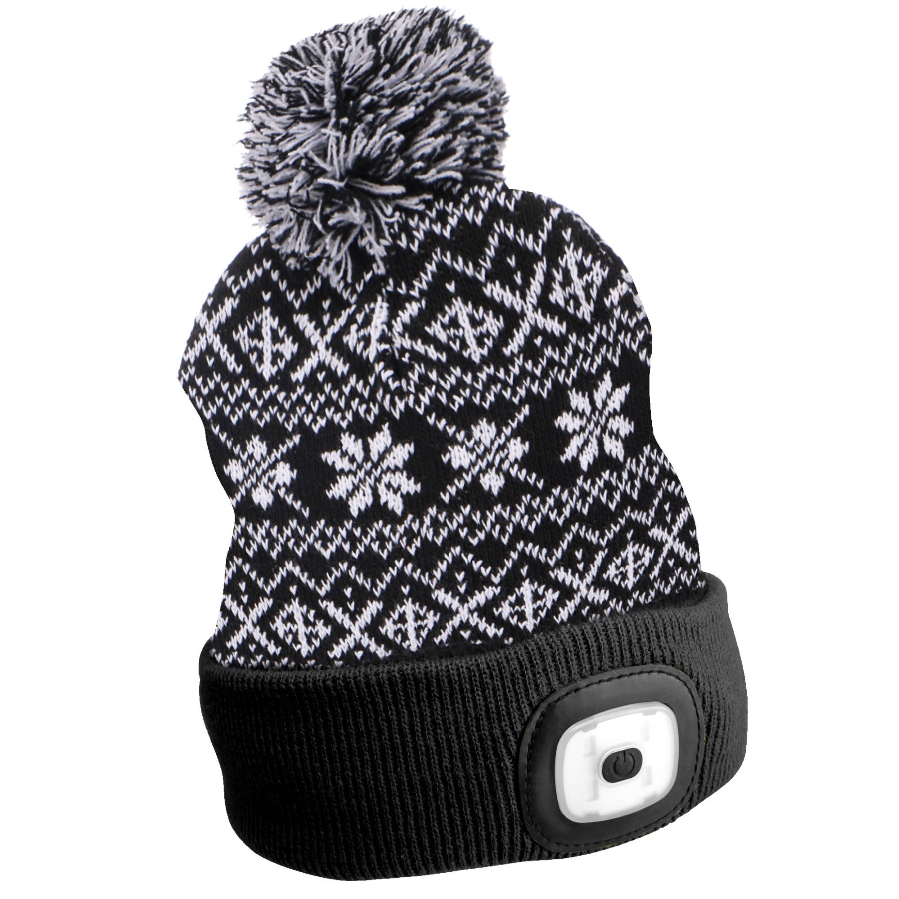 Mütze mit Stirnlampe 180lm, wiederaufladbar, USB, Universalgröße, Baumwolle/PE, Winter schwarz SIXTOL