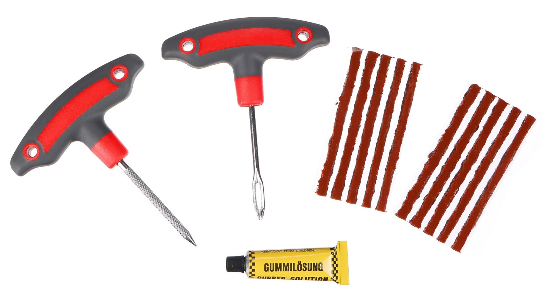 Das Reifenreparatur-Set CAR TIRE REPAIR SET 3 ist ein unverzichtbarer Helfer für jeden Fahrer. Es ermöglicht Ihnen, einen unerwarteten Platten einfach, schnell und vorübergehend zu beheben, ohne eine Werkstatt aufsuchen zu müssen, egal ob Sie unterwegs, bei der Arbeit oder zu Hause sind.Nutzungsanleitung: Finden Sie die Stelle, an der der Reifen durchstochen ist, und entfernen Sie gegebenenfalls den Gegenstand, der den Schaden verursacht hat. Führen Sie die Reibahle in das Loch ein und ziehen Sie sie dann nach oben und unten, bis sie leicht durch die Öffnung gleitet – damit ist das Loch gereinigt und vorbereitet. Fädeln Sie den vom Schutzfilm befreiten Gummistreifen durch die Öffnung der Gabel und tragen Sie Vulkanisierlösung darauf auf. Stecken Sie die Gabel mit dem aufgezogenen Gummistreifen in das Loch, sodass die Hälfte außen am Reifen verbleibt, drehen Sie dann die Gabel und ziehen Sie sie langsam heraus. Schneiden Sie den überstehenden Teil so dicht wie möglich am Reifen ab.