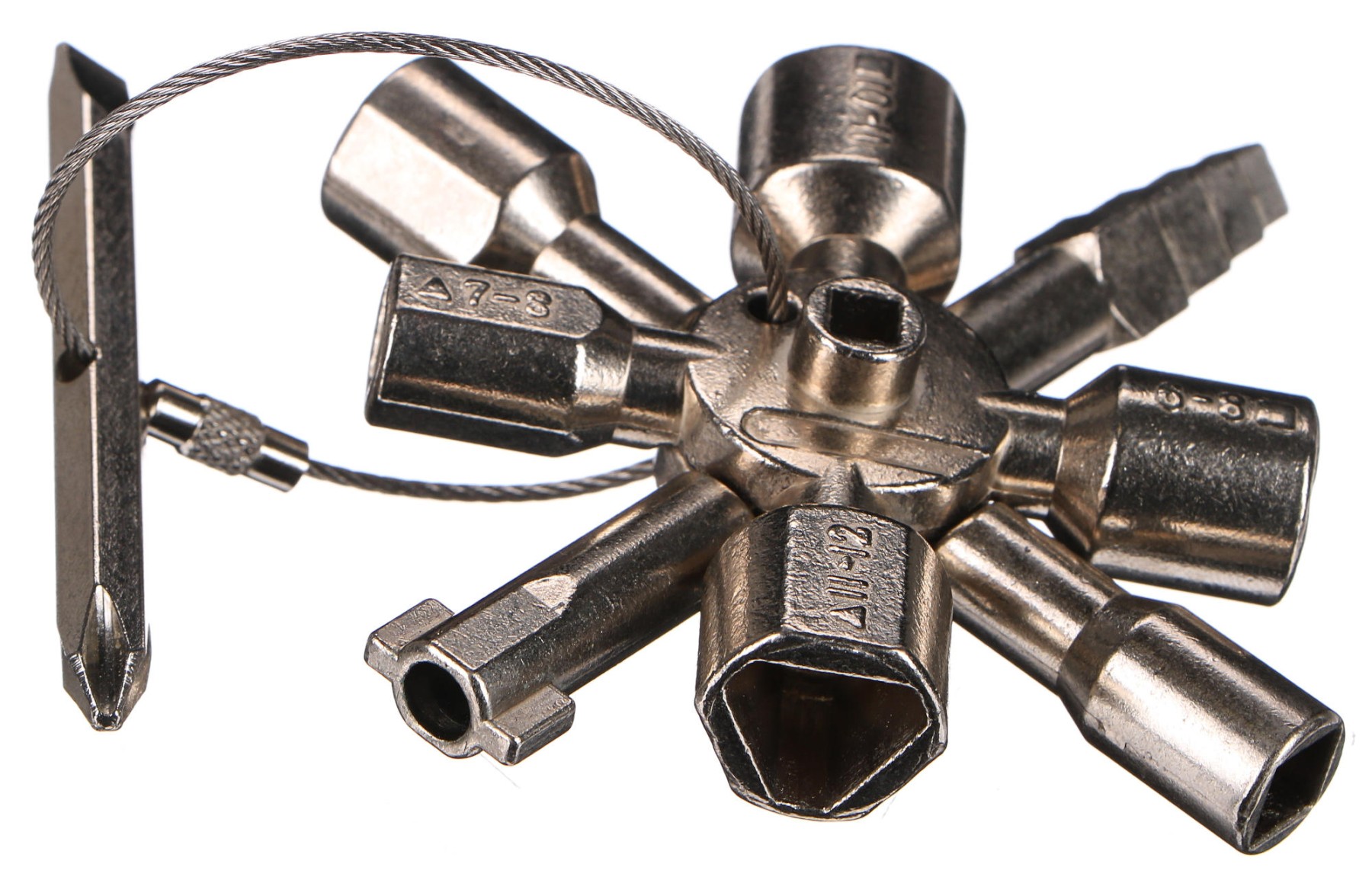 Vielseitiger Universalschlüssel für Verteilerkästen 13-in-1 SIXTOL UNI SERVICE BOX 13, geeignet für jeden Elektriker, Gasinstallateur oder Servicetechniker.