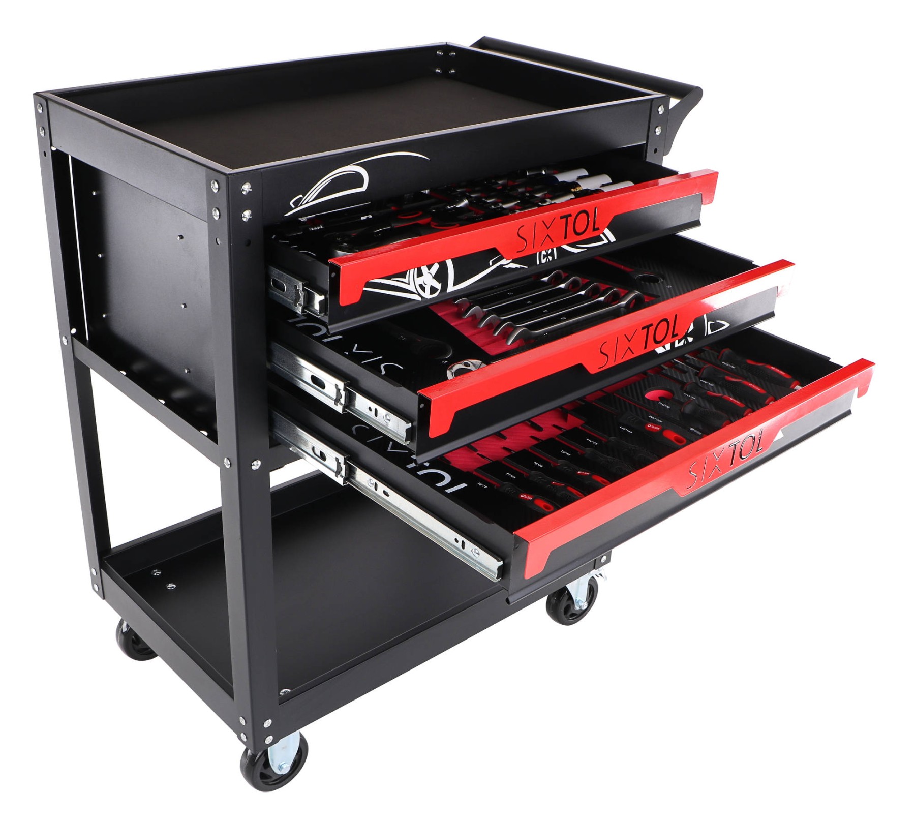 Lieferumfang:- 1x SX8002 - Werkstattwagen MECHANIC TROLLEY JASON, 3 Schubladen, 1 Ablage