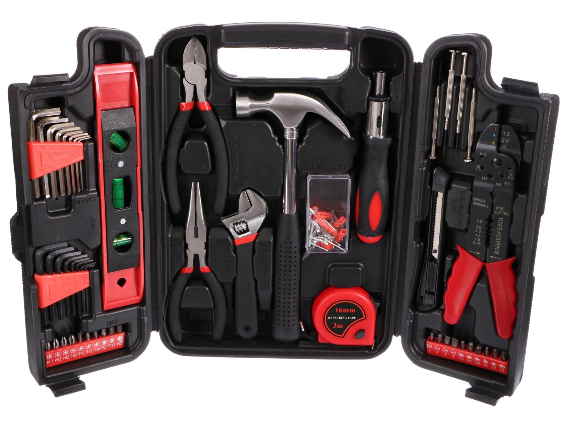 SIXTOL HOME 126 darf in keinem Haushalt fehlen. Im Set finden Sie Zangen, eine Wasserwaage,
