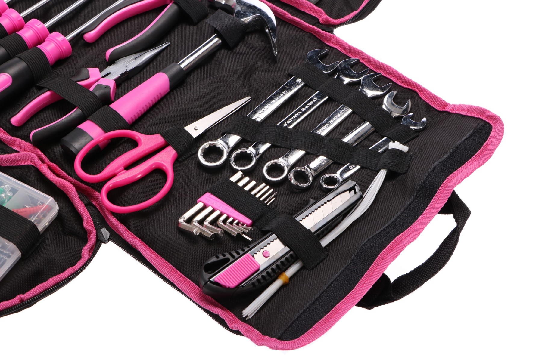 Hauptvorteile:- Die Werkzeuge sind in einer stylischen textilen schwarz-rosa Tasche verstaut